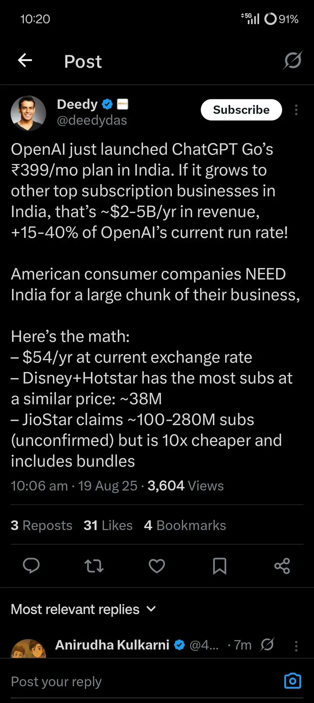 Kyle's take: But this actually makes sense despite the apparent contradiction. They're converting free users into paying customers, even at lower prices. Better to get $4.50/month from Indian users than nothing.