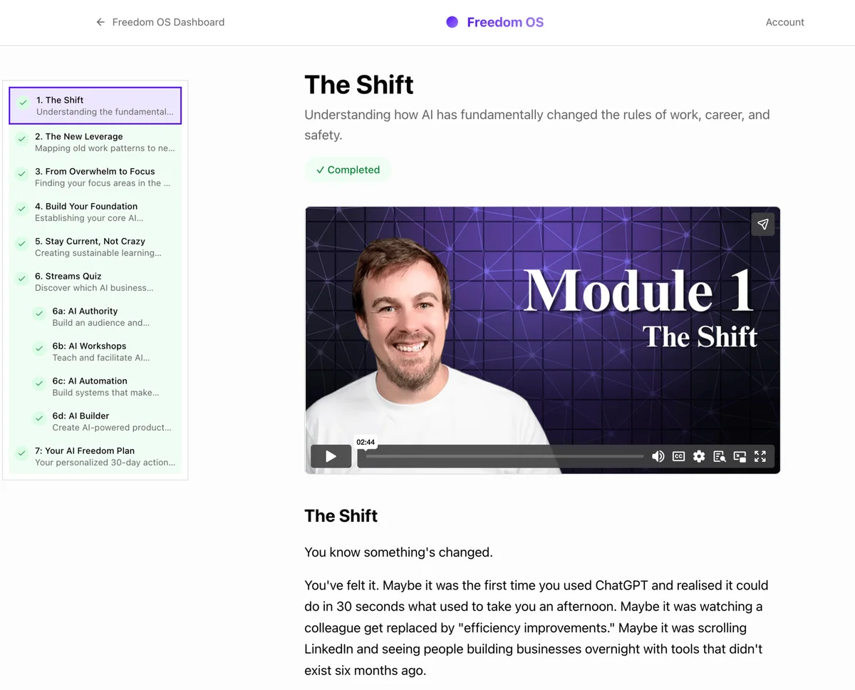 Freedom OS Now Live: Learn exactly what AI Business Model to start based on YOUR situation. Use code EARLYBIRDOS for 50% off (expires midnight tonight, UK time).