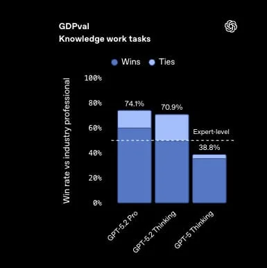 🚀 GPT 5.2 Crushes Benchmarks - Beats Or Ties Humans On 71% of Work Tasks