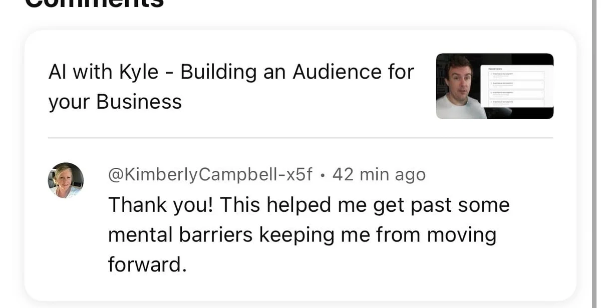 Third, the live session recording. The full walkthrough with Q&A where I cover everything from choosing your platform to the specific prompts for finding collaborators in your niche. Watch it here: AI with Kyle - Building an Audience for your Business.