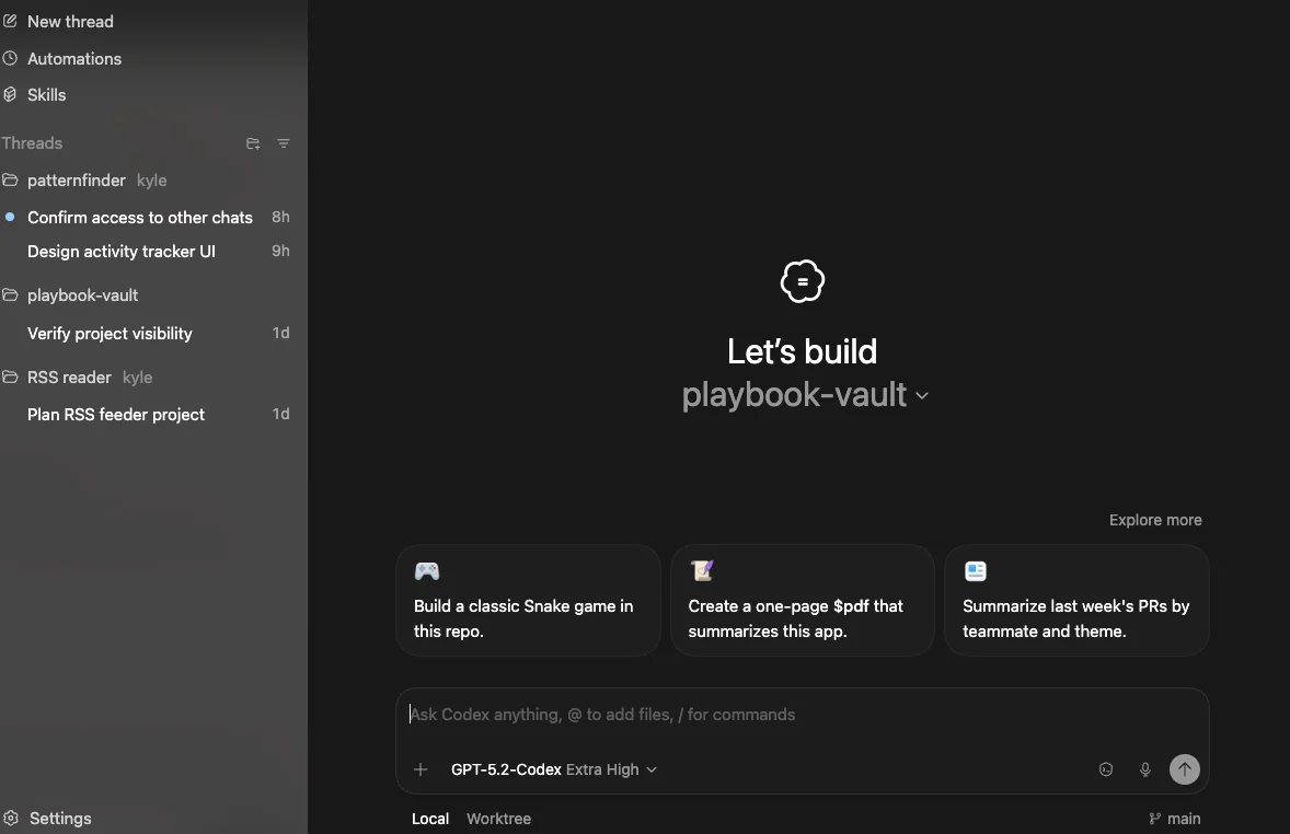 The app represents a shift in how we interact with code. Traditional development environments (IDEs) show you all the code and expect you to work with it directly. Codex is different - it's more like chatting with ChatGPT. You describe what you want, it builds it.