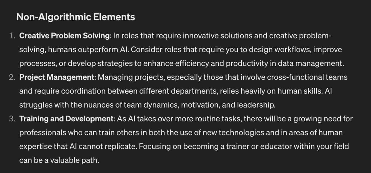 This is instead about working out what areas of your current role have these attributes of physicality, non-algorithmic and empathetic work.