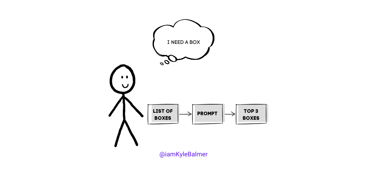 What they'd built was dead simple. They'd scraped a list of storage boxes off a popular website, dimensions and all. Added a basic prompt that asked what space you were trying to fill, and it spat back three box recommendations that would fit.