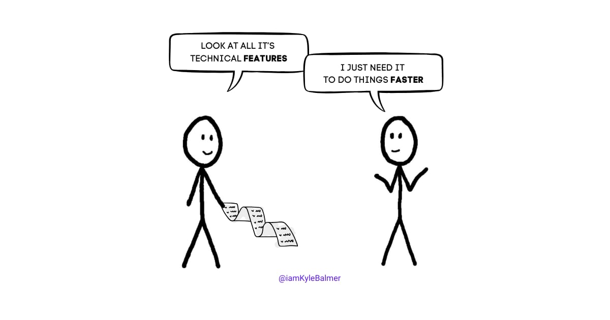 Think about when you last bought something that changed your life. Did you buy it because of the technical specs, or because of what it did for you?
