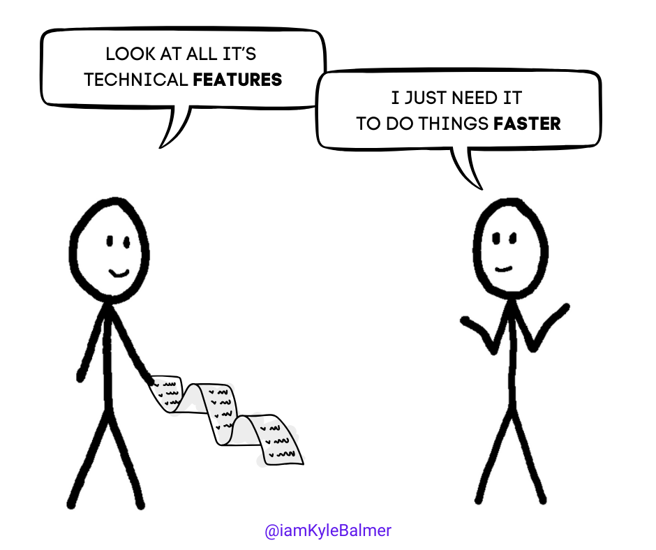 Think about when you last bought something that changed your life. Did you buy it because of the technical specs, or because of what it did for you?