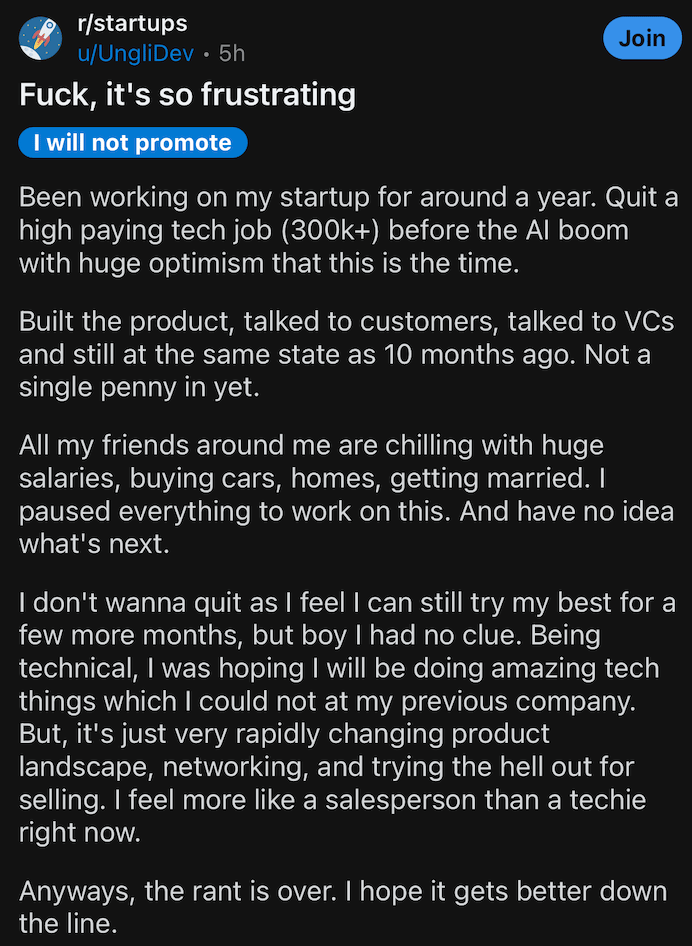 Notice his problem here? “Built the product, talked to customers”.