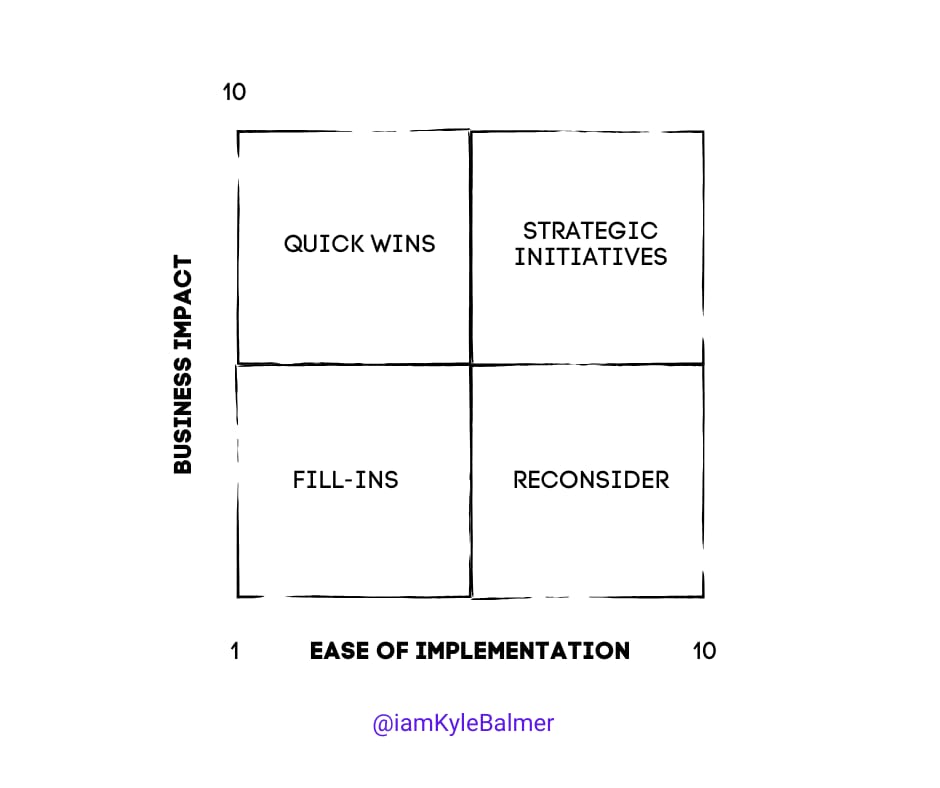 Fill-Ins (High Ease, Low Impact): Implement these as resources allow
