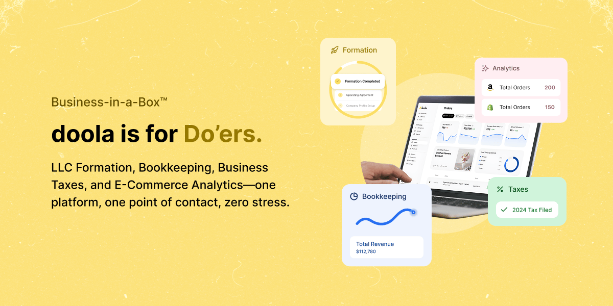 doola is the ultimate Business-in-a-Box solution for E-Commerce entrepreneurs. We handle all the unsexy yet critical back-office tasks, from entity formation and bookkeeping to business analytics and tax filings, so you can focus on growing your dream business.