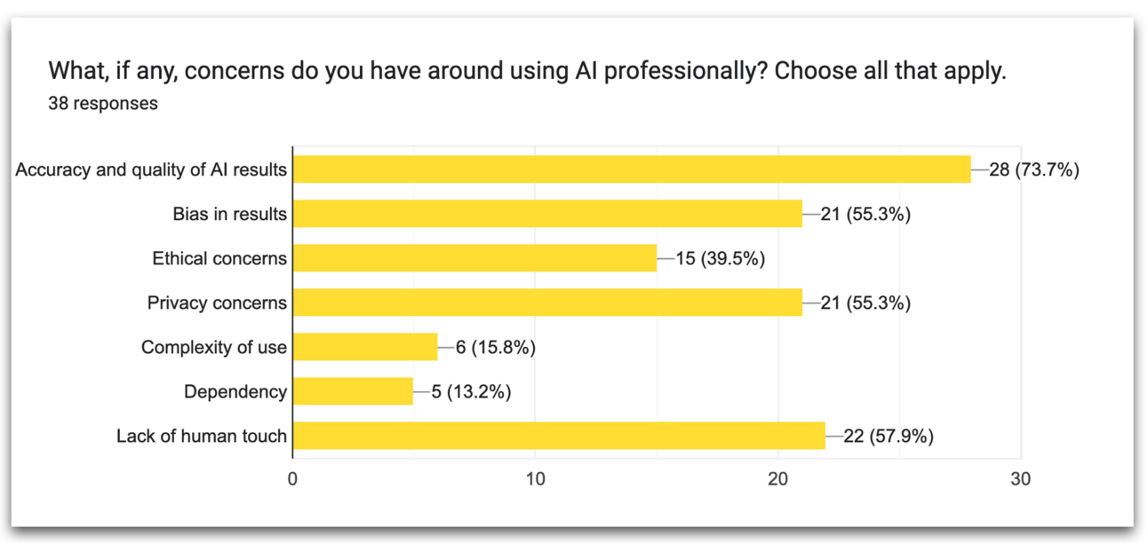 The survey specifically has a question - what are your biggest concerns about using AI professionally?
