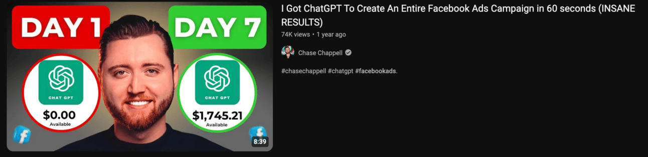 For example plug in a search term like “AI for facebook ads” and there are tonnes of videos like this: