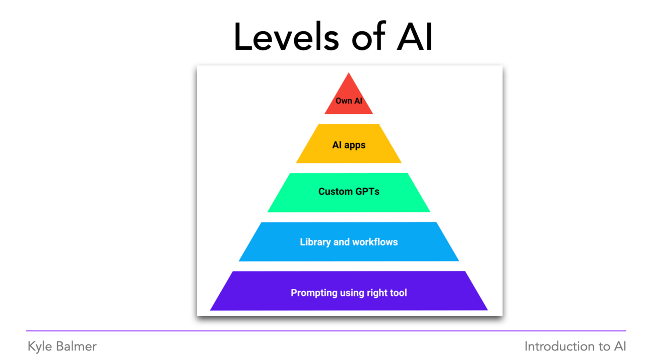 Instead we can build up step by step. In my workshops I teach something called the Levels of AI: