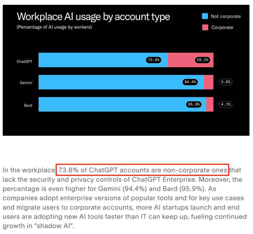 Also: security and data protection. Paid accounts mean that your company data isn’t going to the AI companies for training their models - you can secure your data. Right now ~70-80% of work is being done on free/personal accounts, meaning all of that data is leaving the company: