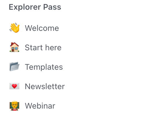 I would change the names of these to make them sound less salesy. For example I’d change “Taster-content” to “Start here” and “promo-webinars” to simply “webinars”.