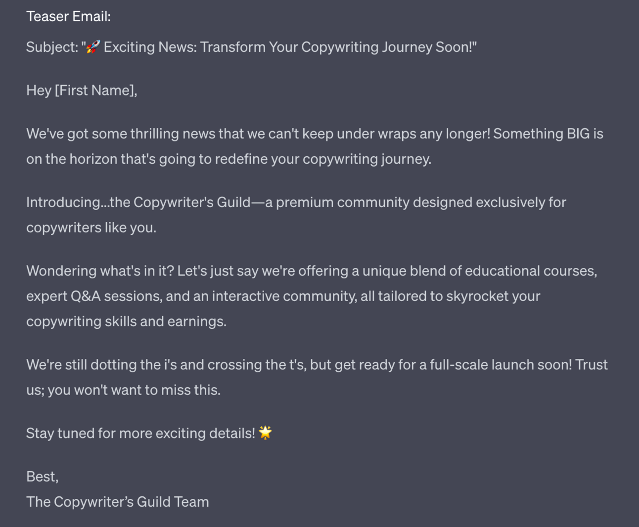 Teaser email - Build excitement by announcing the new community is coming soon. Share a few details but don't give everything away. Encourage people to stay tuned for more info.