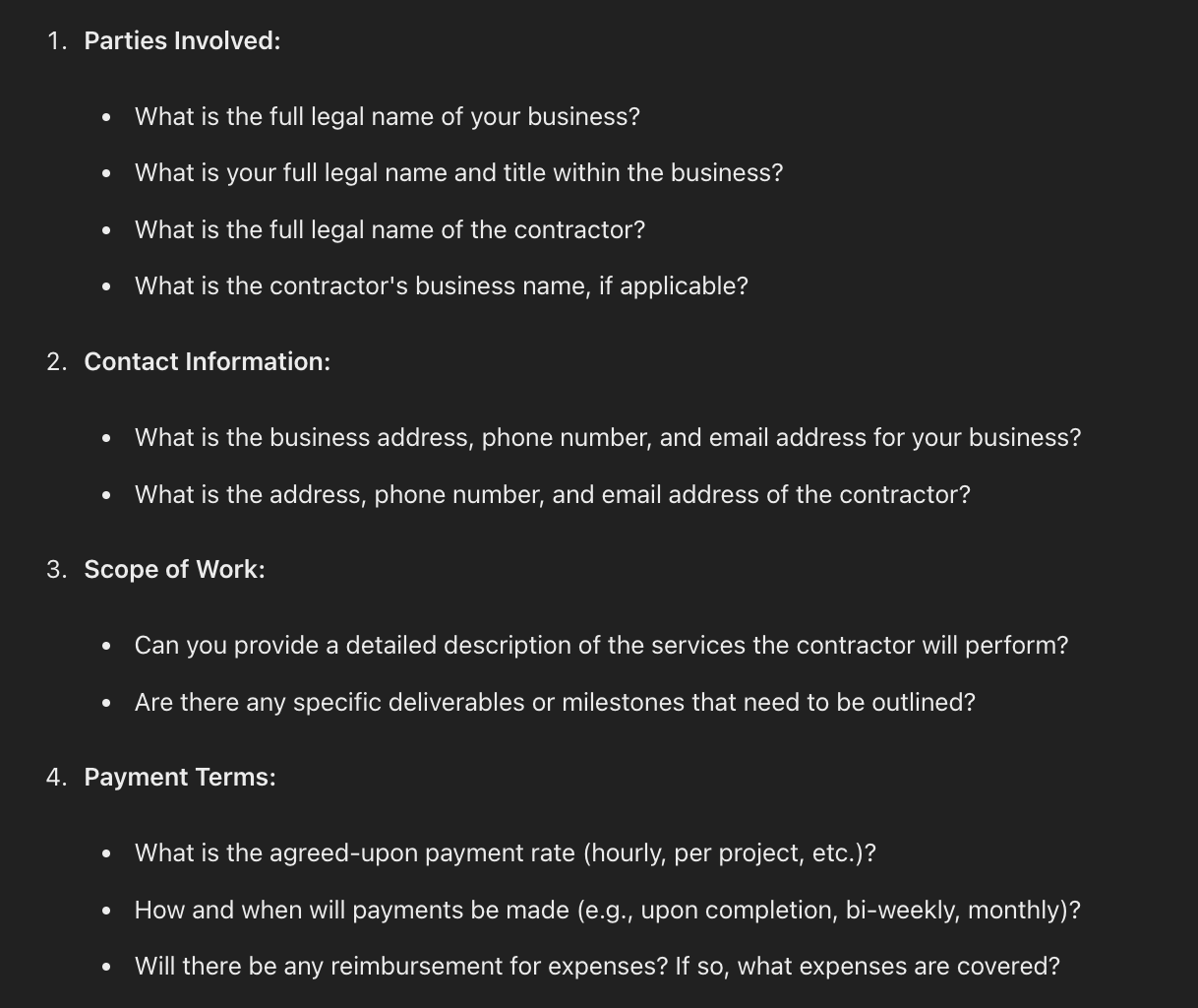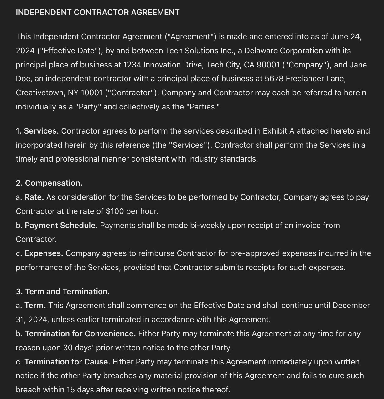 Let’s do this with a simple independent contractor agreement using ChatGPT.