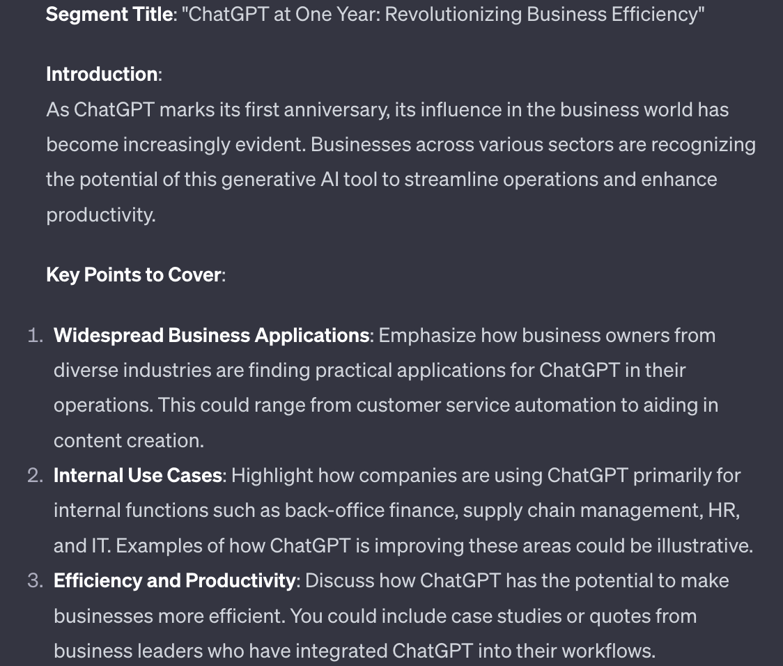 From here I can either manually write out the article based on the notes. Or ask my Custom GPT to write it out in full.