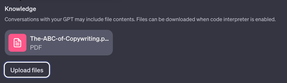 In our case we’re using a copywriting book to give our GPT the knowledge of a copywriter - much like if we were training ourselves or an employee in the skill.