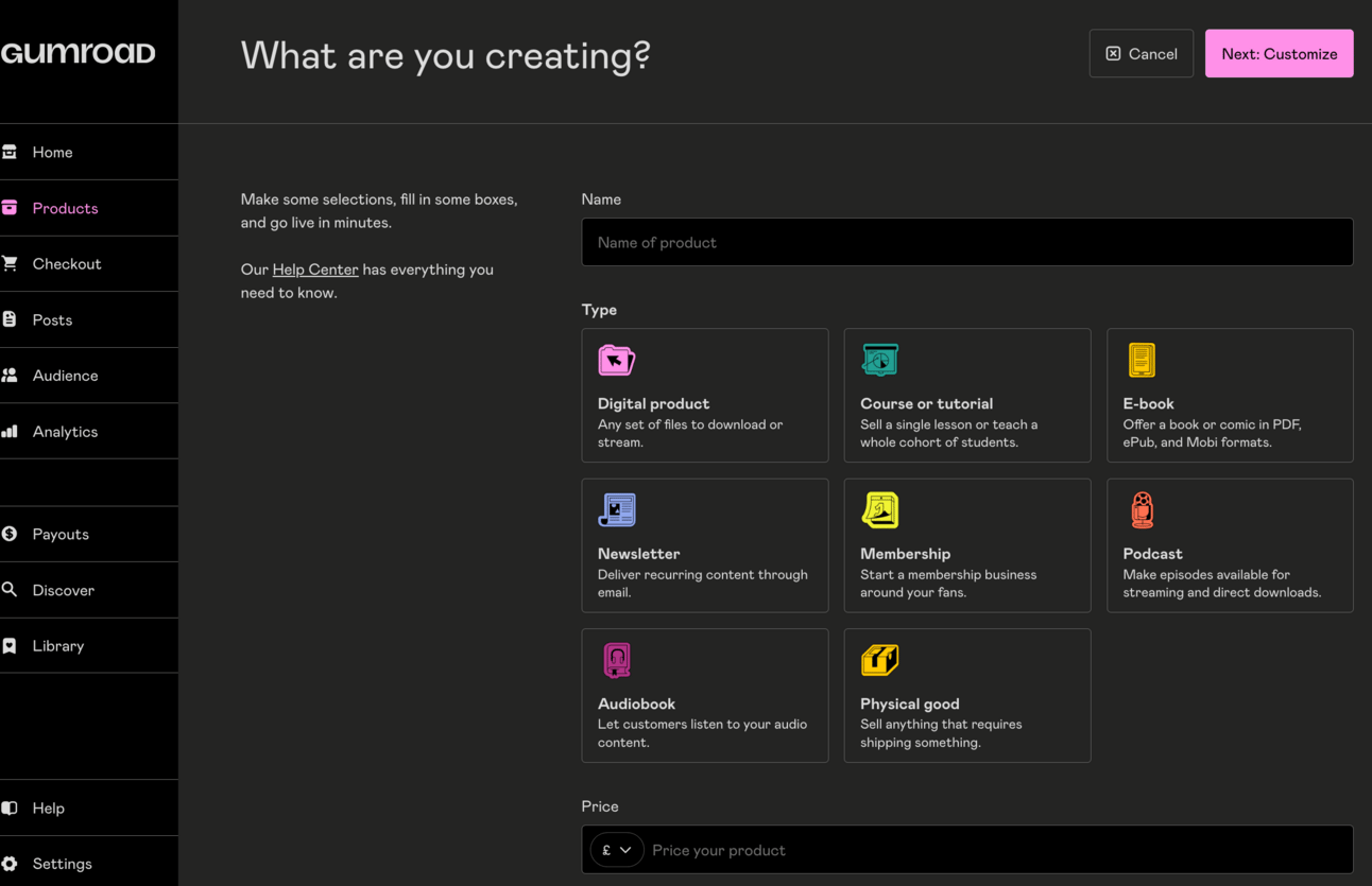 Once you’ve got a live Gumroad account up and running we can start adding products.