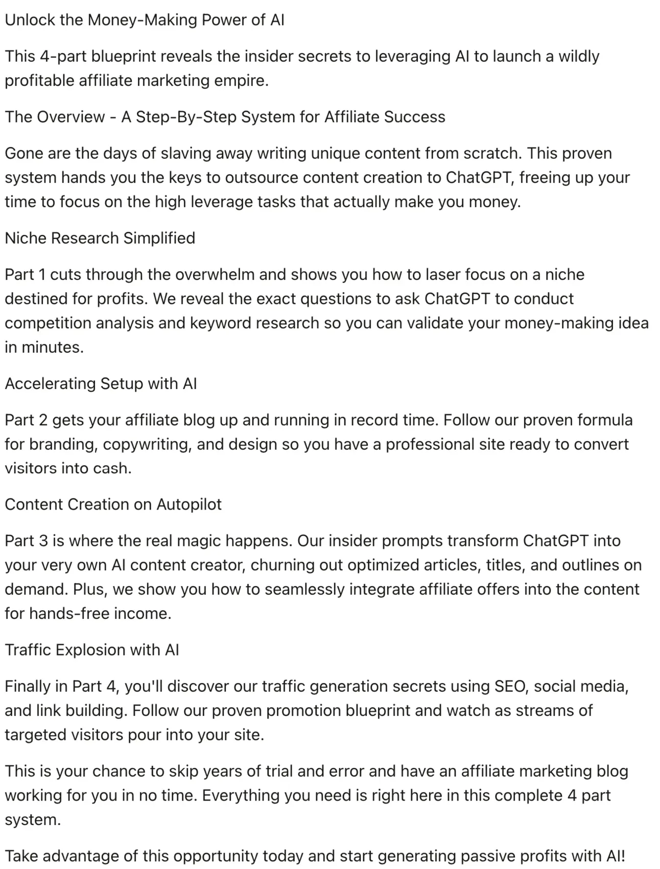 So in the examples we’ve been using my product name is “AI Bootstrapper’s Bible” and the tiers are: