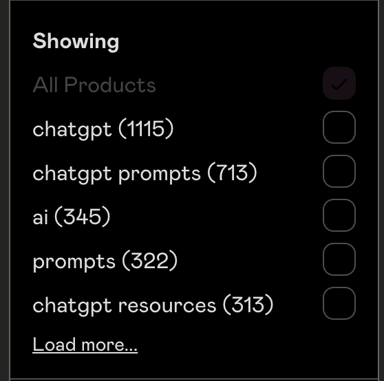 Once you’ve found your category check the top of the page. There will be a list of popular tags like this: