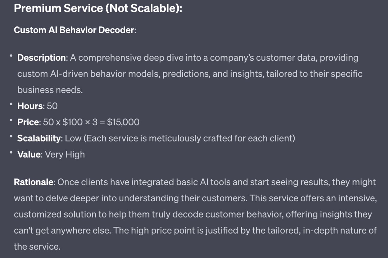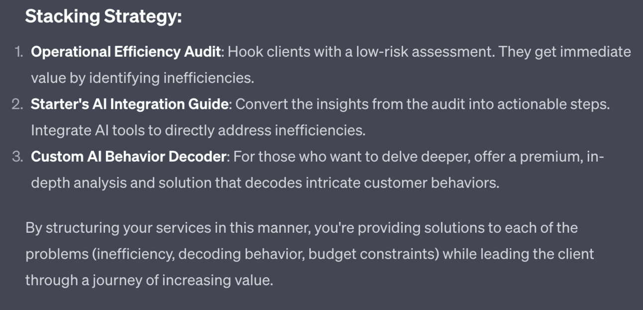 Third ChatGPT designs a premium offer to top off our value stack: