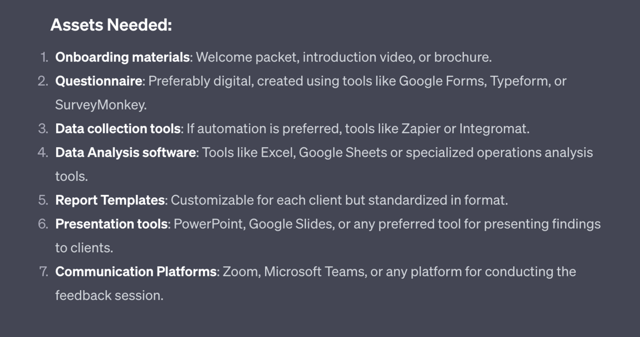 The output from ChatGPT is long and detailed so I’m breaking it down here.