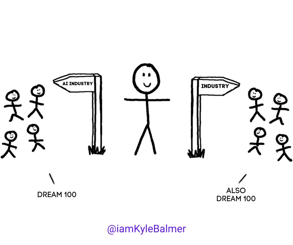 As an AI consultant, your unique value lies in being the bridge between two worlds: the cutting-edge AI community and your specific industry niche. This requires applying the Dream 100 method in two directions: