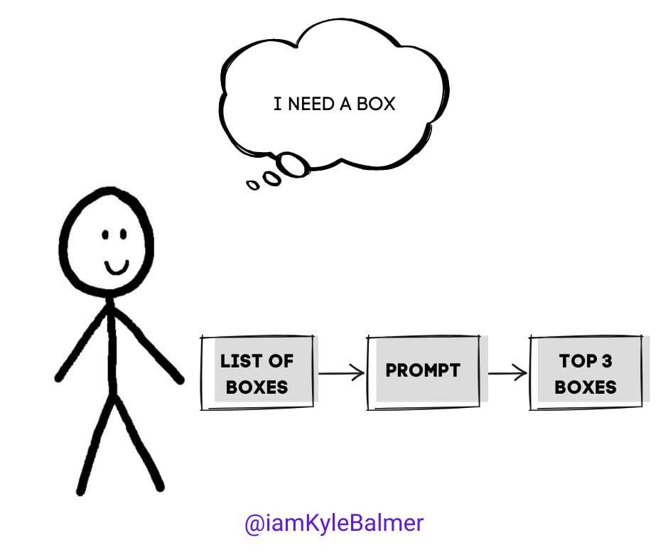 What they'd built was dead simple. They'd scraped a list of storage boxes off a popular website, dimensions and all. Added a basic prompt that asked what space you were trying to fill, and it spat back three box recommendations that would fit.