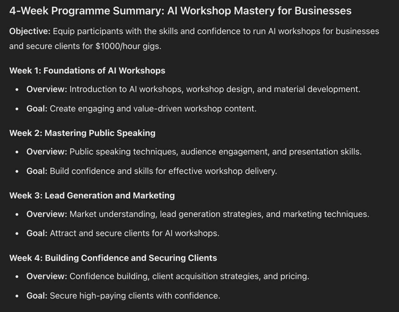 Give me a 4 week outline of the cohortThis will give you a very basic outline: