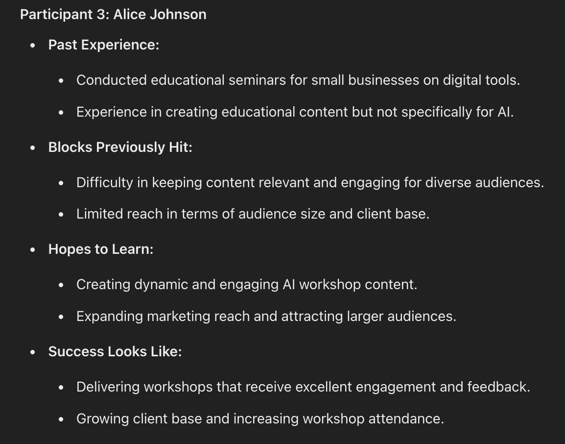 If I run this (and all the other student information) through the above prompt ChatGPT will adapt my initial cohort structure to better suit their needs: