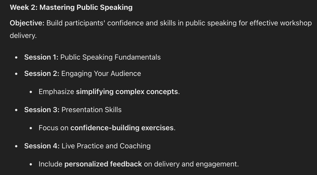 For example here ChatGPT has added in section on simplifying complex concept, building confidence and even personalised feedback on presentation skills. Those parts are bolded.