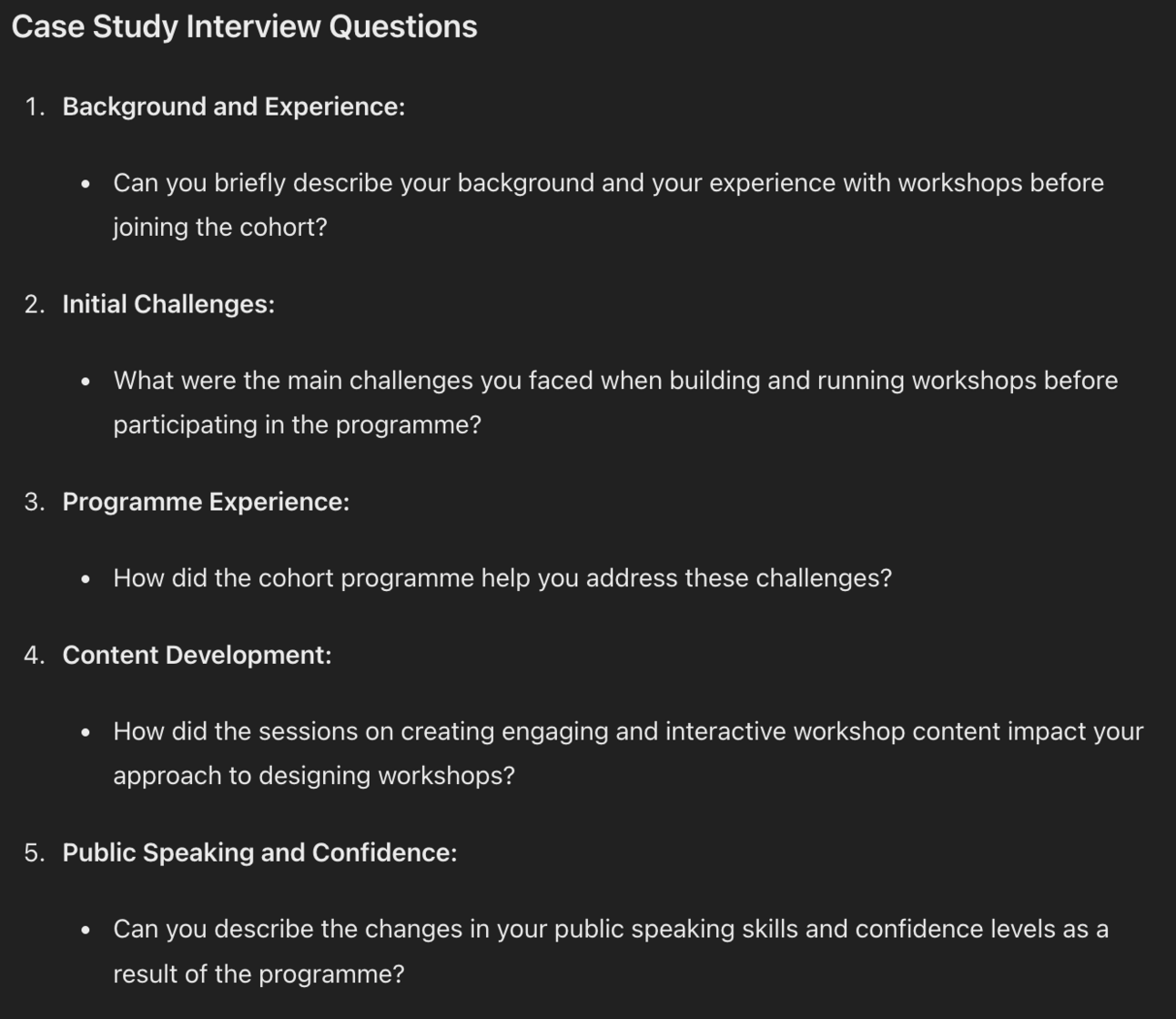 Collect up their answers via an interview or survey form. Then drop them back into ChatGPT to convert it all into a one page case study. You can straight up drop that on your website or shoot videos about it.