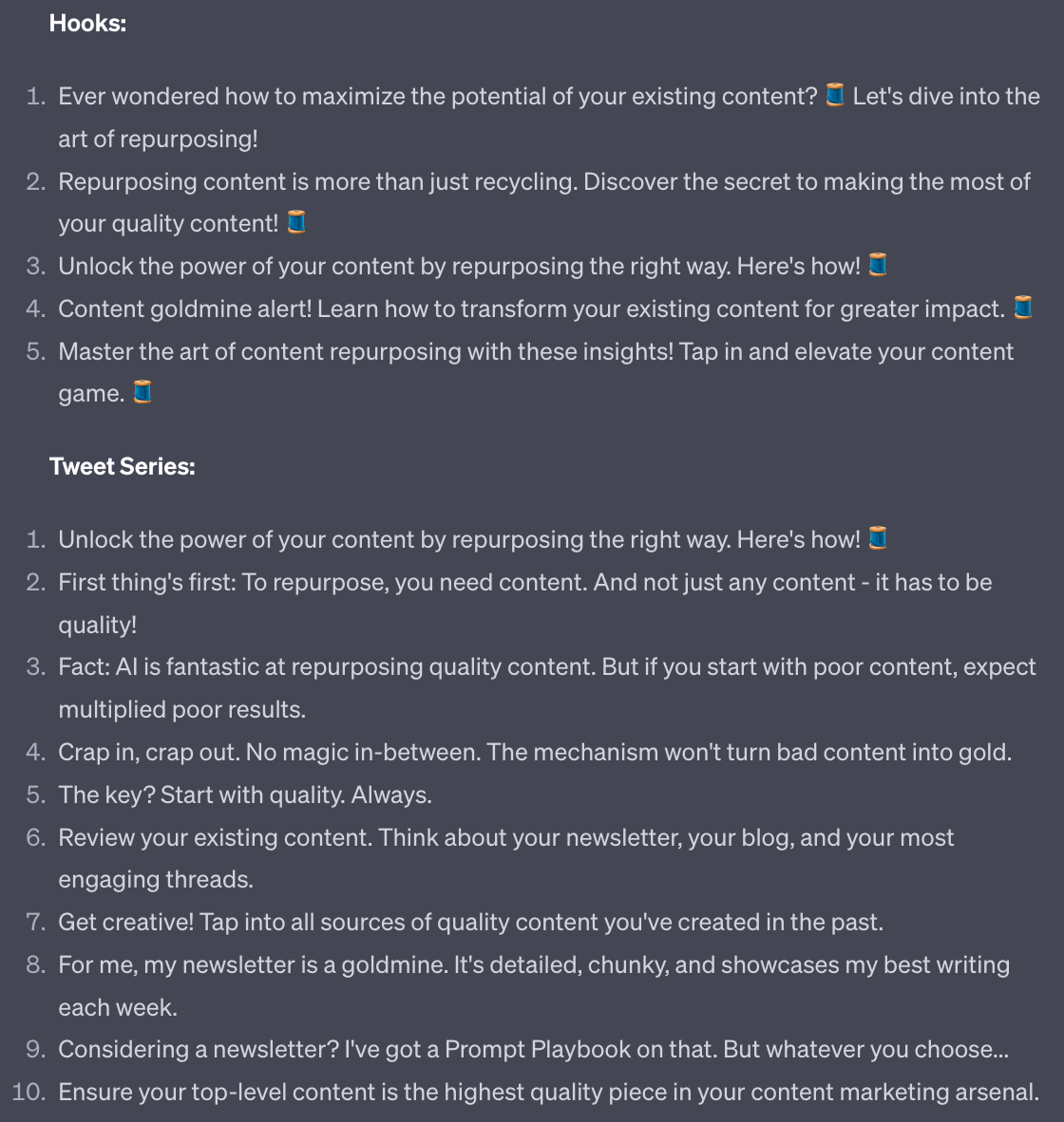 For example all my long form posts, threads and individual tweets can be about repurposing. It creates thematic consistency.