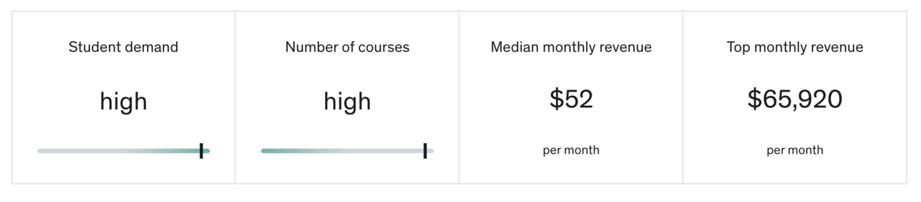 Further down the page you’ll also be shown the top courses in the topic, their number of sales and their average review ranking.