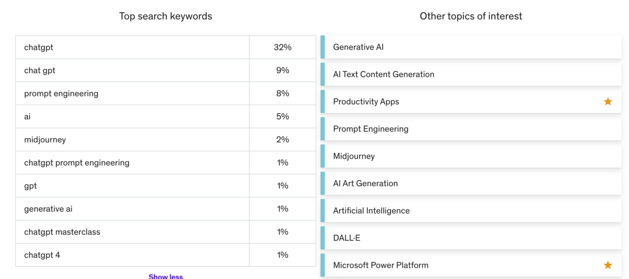 For the topic “ChatGPT” for instance I can see that demand and competition is high. Unsurprising considering the top teacher makes $65,000/month.