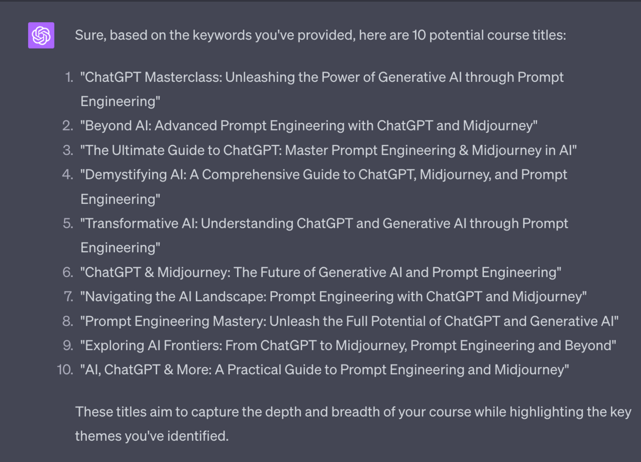 Instead we’re using AI to help us with the process of creating a course - not to do all of the work for us! Therefore the course we are creating should be a topic that we have both knowledge and skills in.