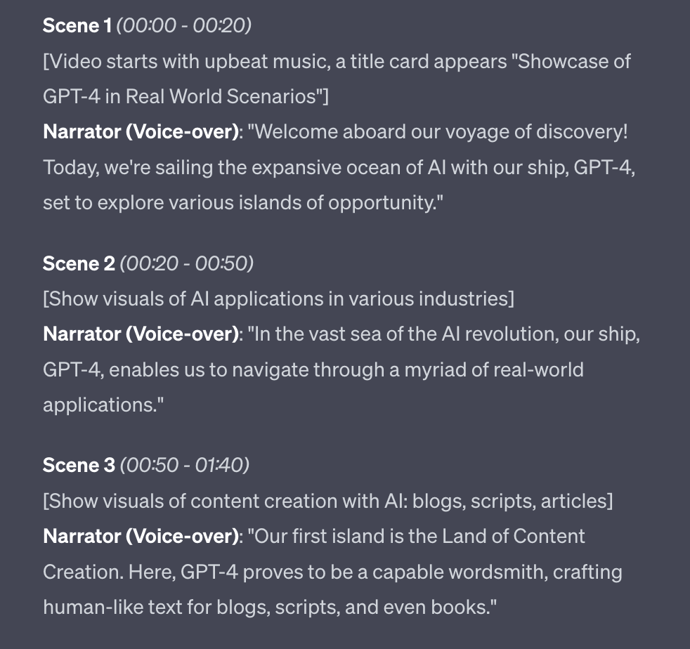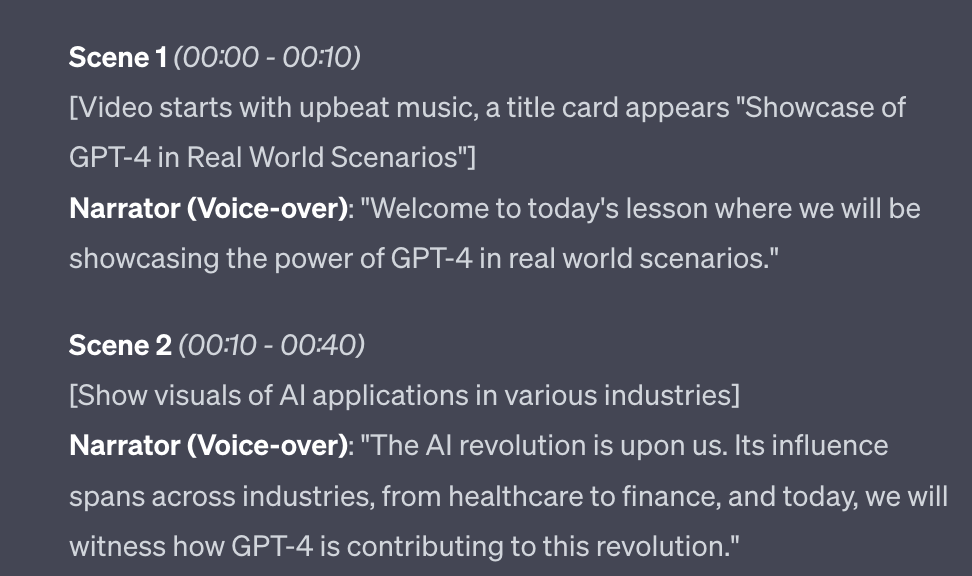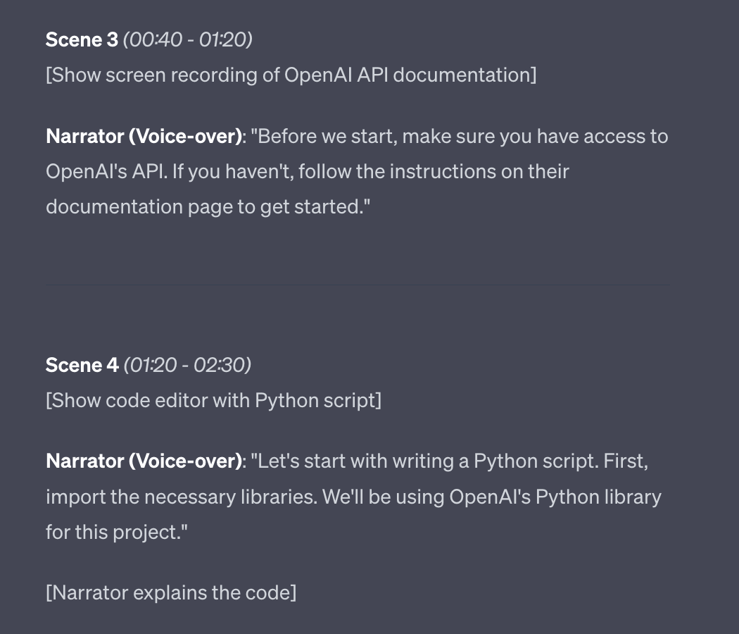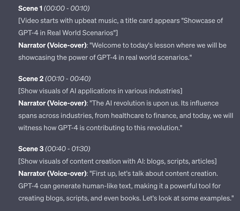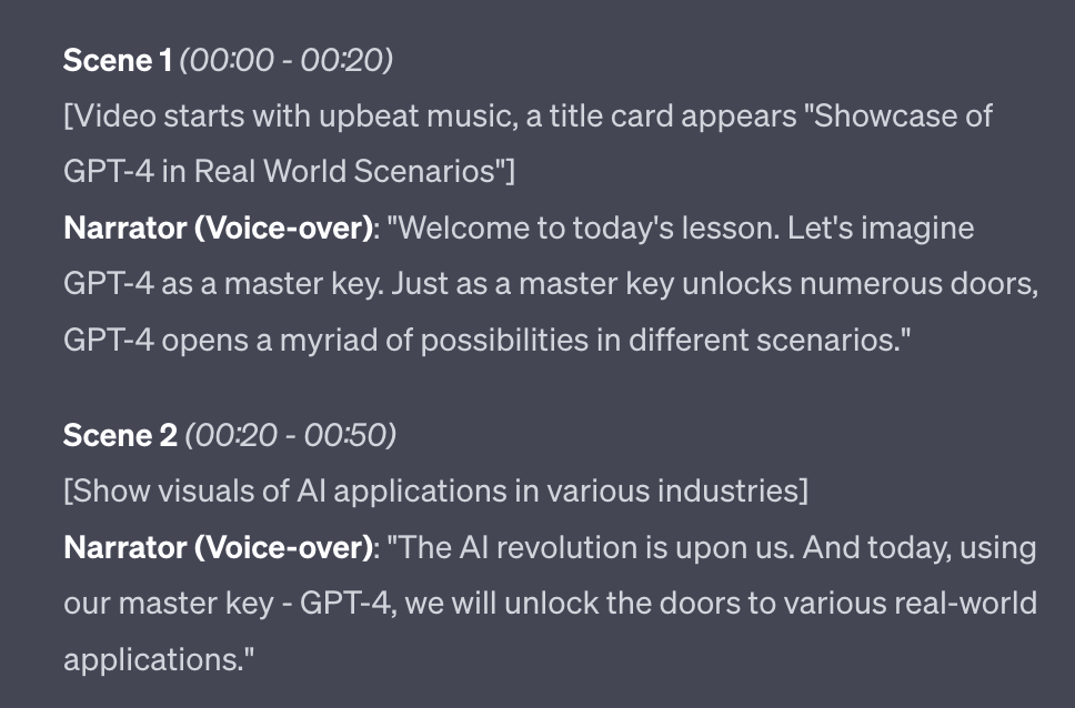 ChatGPT will give us a basic draft of a script, hitting the learning outcomes and main points that we set up in the structure in Part 2.