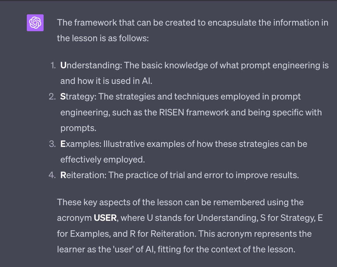 This is nice little acronym as it’s also about users, who are the people “using” ChatGPT! That works nicely.