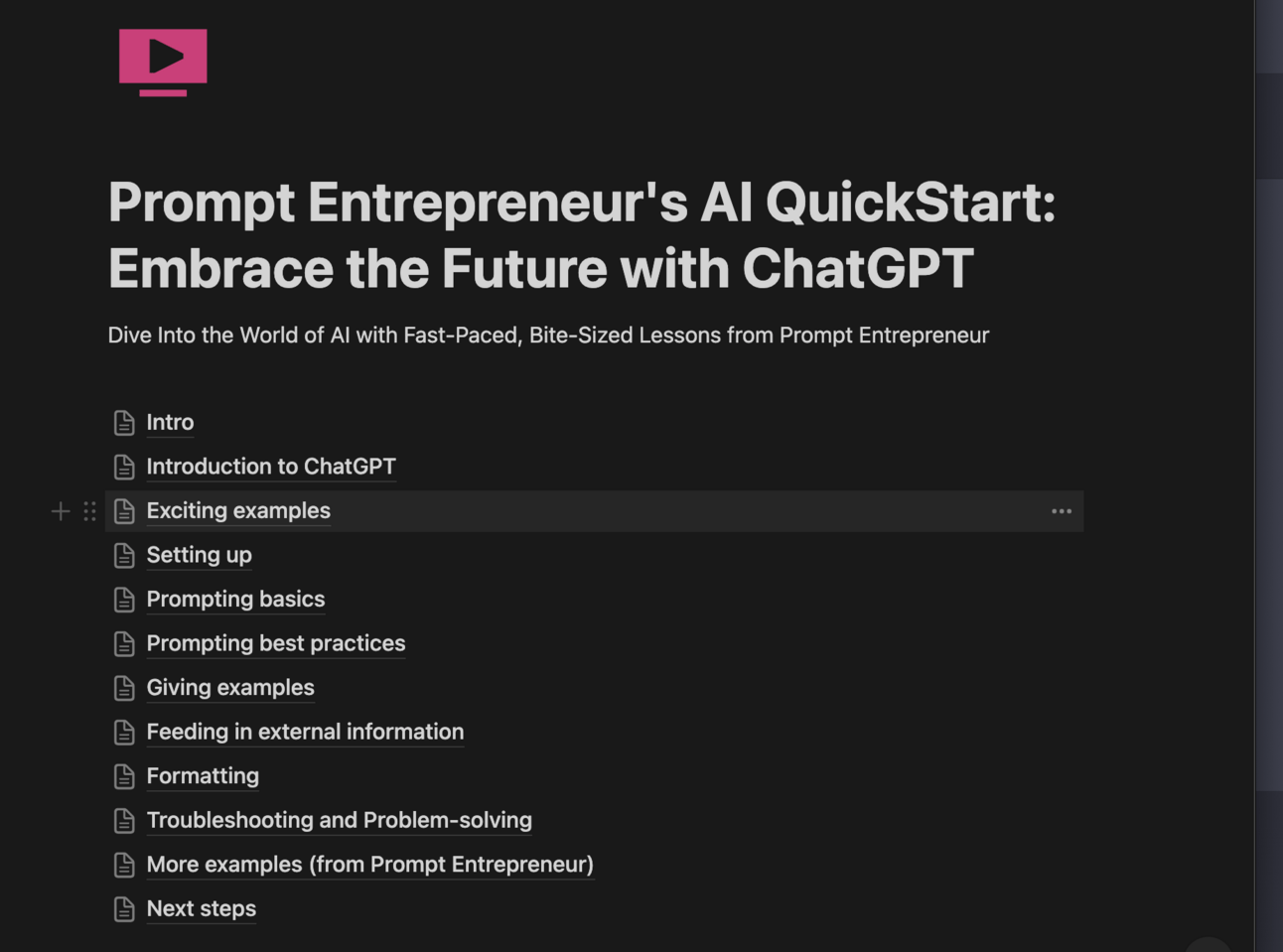 Here for example is my Notion for a (work-in-progress!) course on using ChatGPT: