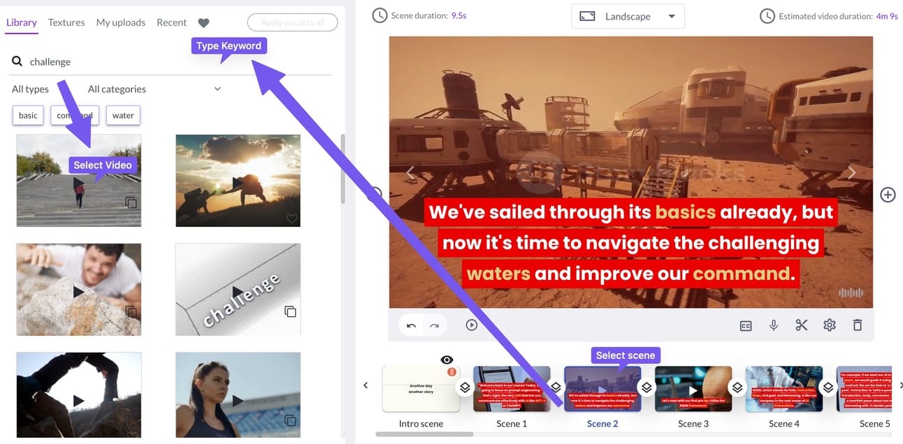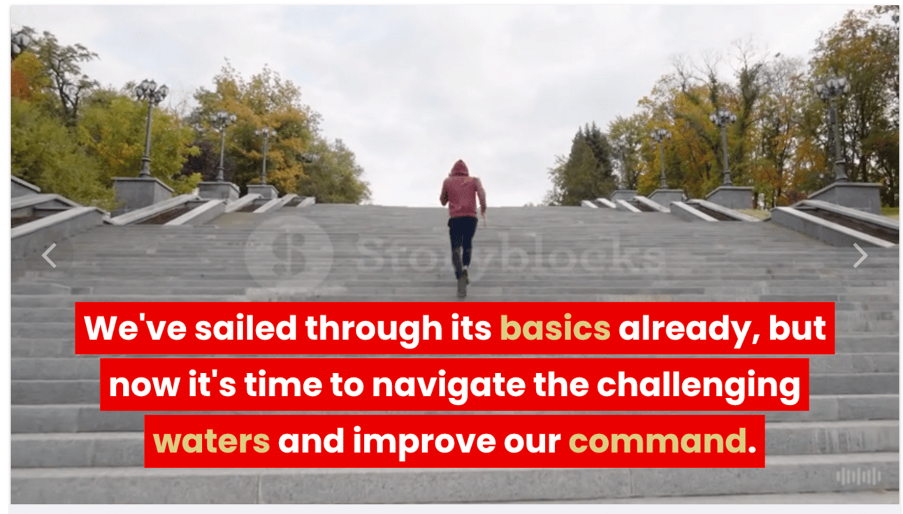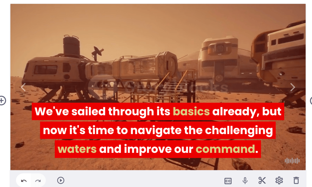 This part of the video is about moving from easy topics to more challenging topics. For some reason Pictory has chosen a video of a Martian space base. Let’s switch that out.