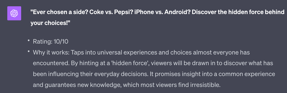 Let’s use ChatGPT to generate some variant hooks: