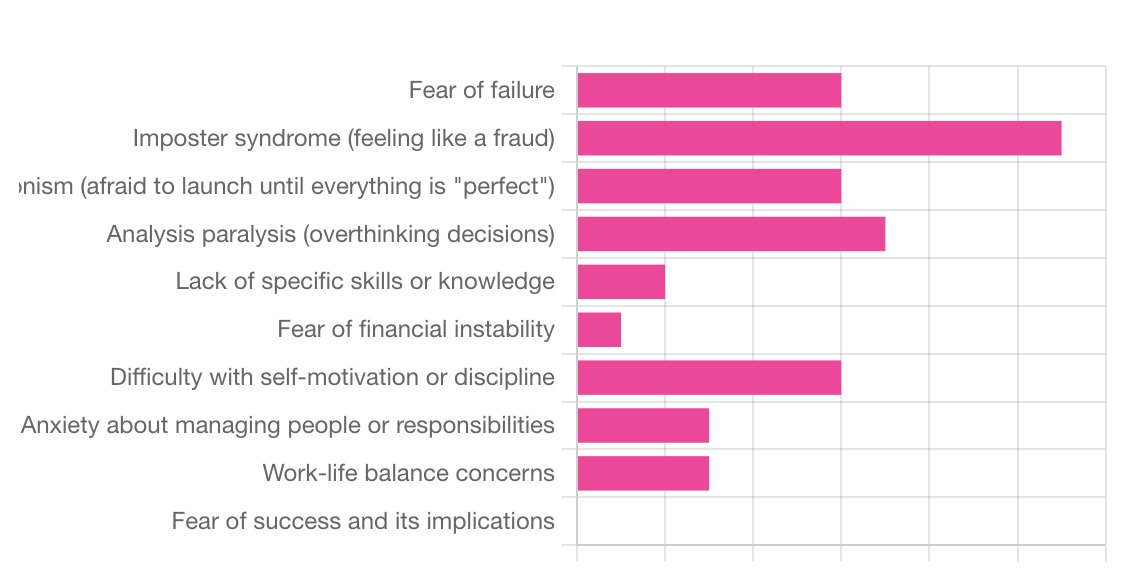 Imposter syndrome is a major roadblock for many entrepreneurs. I ran a poll in my newsletter about what personal blocks are holding my readers back and it was by far the top problem:
