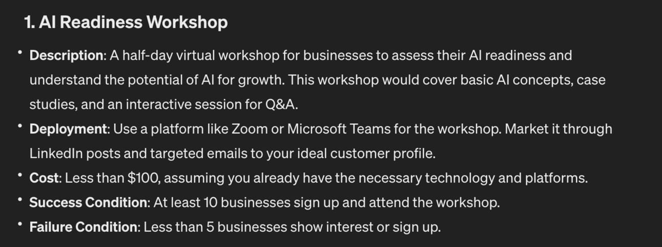 ChatGPT will generate some MVP examples. Here’s one of five: