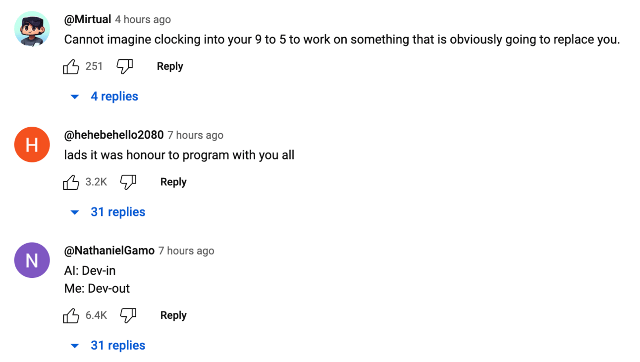 Devin seems to have changed their tune - suddenly I’m seeing a lot more software developers calling for regulation and slow down on AI. This tells me that Devin is good…and they are worried.
