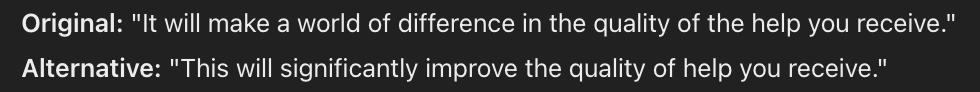 Identify the phrases that sound AI-generated and suggest alternatives.ChatGPT will suggest alternatives like so: