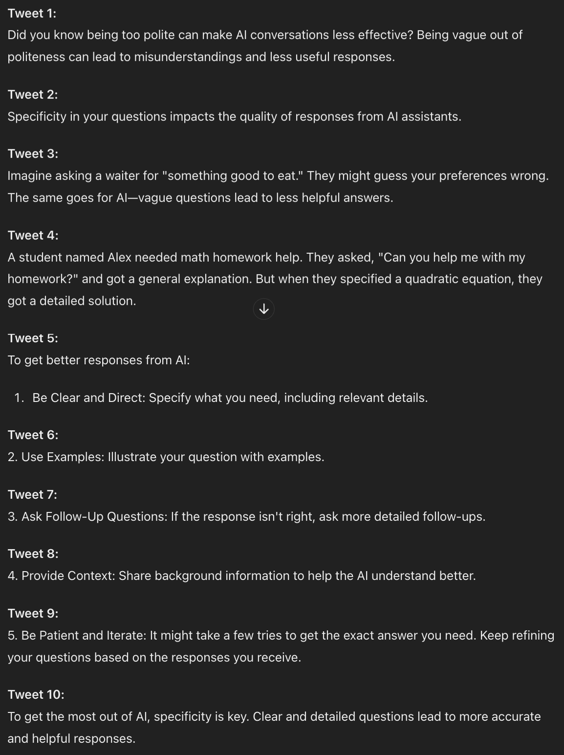 Use the prompt below your initial core message, not the long form article. ChatGPT will format the core message into a thread: