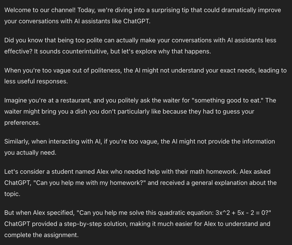 We can make scripts from our core message using AI. One variable here is how much detail you want in the script.