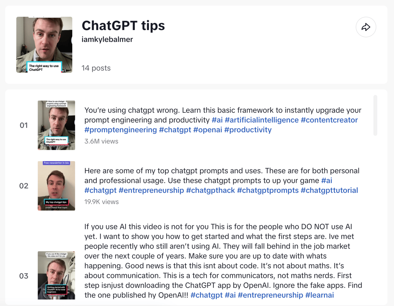 We can also have much less structured series like this one I have called “ChatGPT Tips”:
