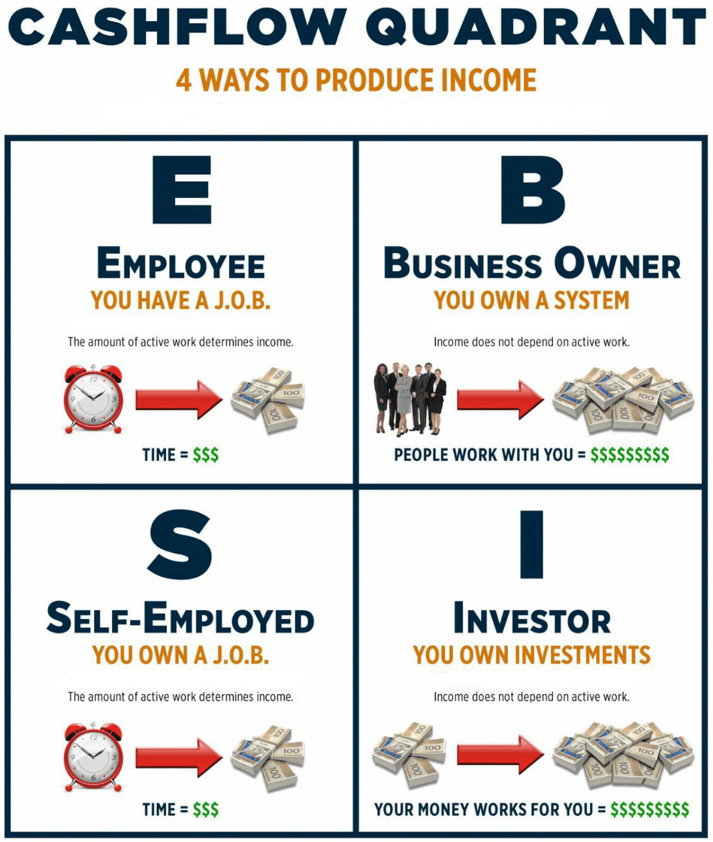Robert Kiyosaki’s CashFlow Quadrant is a great model here: