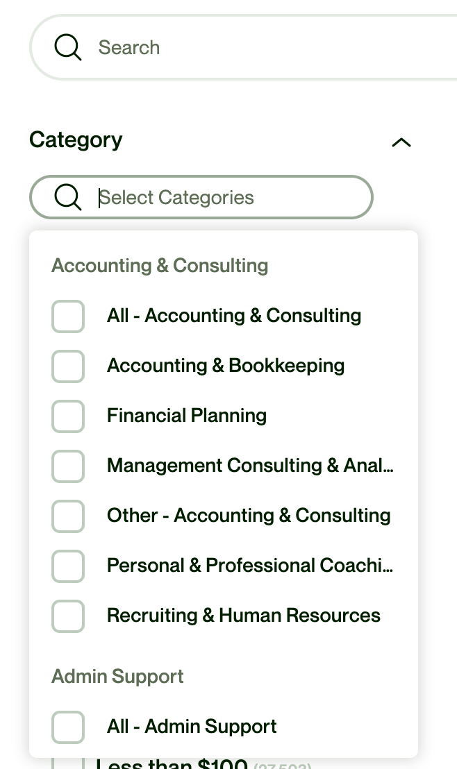 What we are looking to do here is find which of Upwork categories are the most relevant to us. These are the categories we’ll be focusing on when picking up gigs.